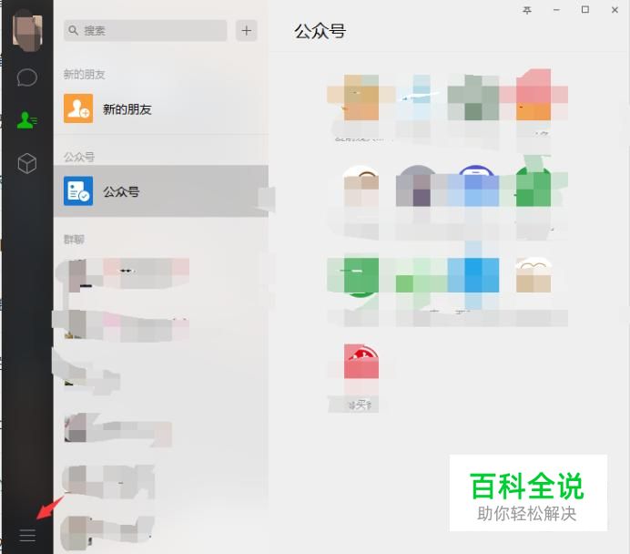 首先我们打开电脑版的微信页面,点击左下角的三横图标。