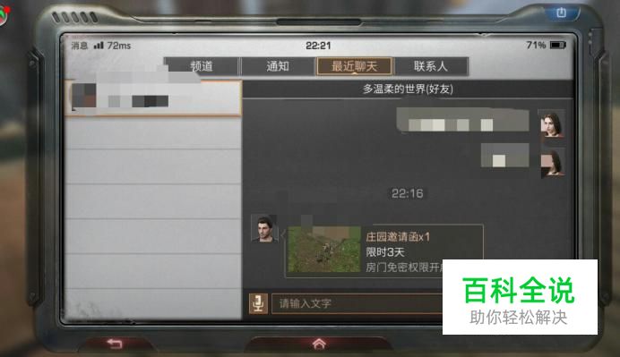 所以在去好友家之前,应该先给好友发信息,让好友发庄园邀请给你,然后在一个小时内领取邀请卡,就可以前往好友家了。