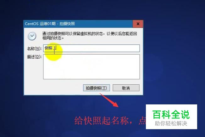在弹出的拍摄快照界面中给快照起一个名称,然后点击拍摄快照按钮,如下图所示