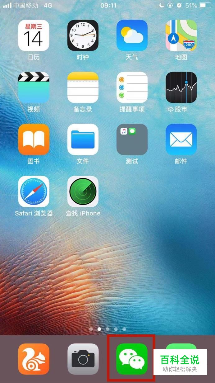 首先在我们的手机桌面上找到微信并点击它,如下图所示。