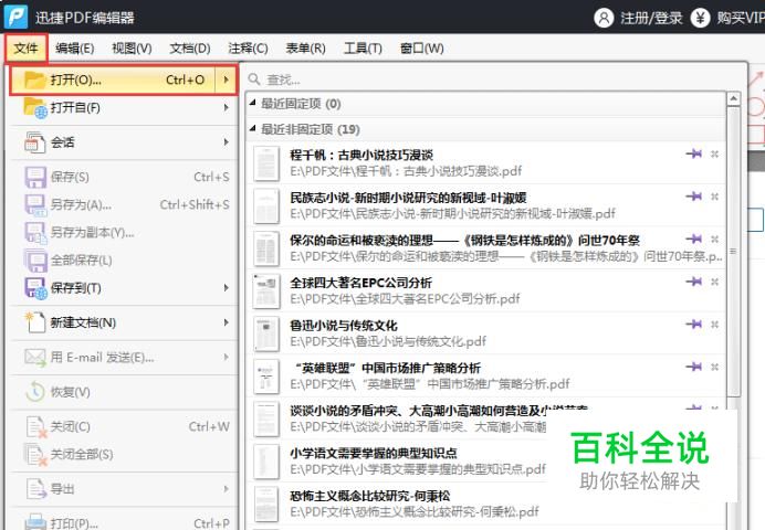 当我们打开下载好的PDF编辑器。点击“文件”。然后在弹出目录中选择打开按钮选择需要修改PDF文件打开。