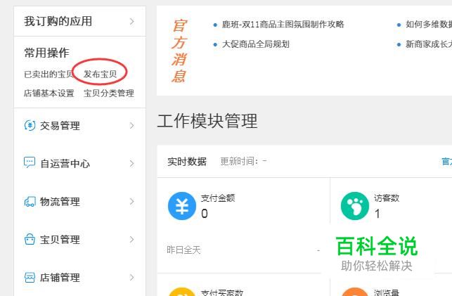 首先将自己的账号登陆好并且进入卖家中心,点击发布宝贝