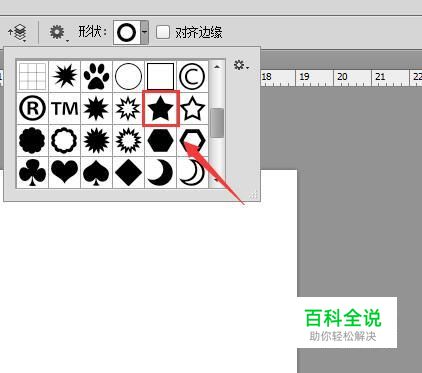 输入好文字之后在找到自定义形状选项,点击该选项在属性里找到我们需要的星形,如图所示:
