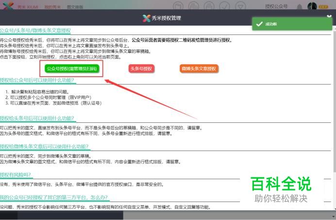 在“秀米授权管理”中选择“公众号授权”。