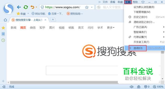 首先,我们打开我们电脑上面的浏览器,然后我们点击工具,弹出的界面,我们点击选项;