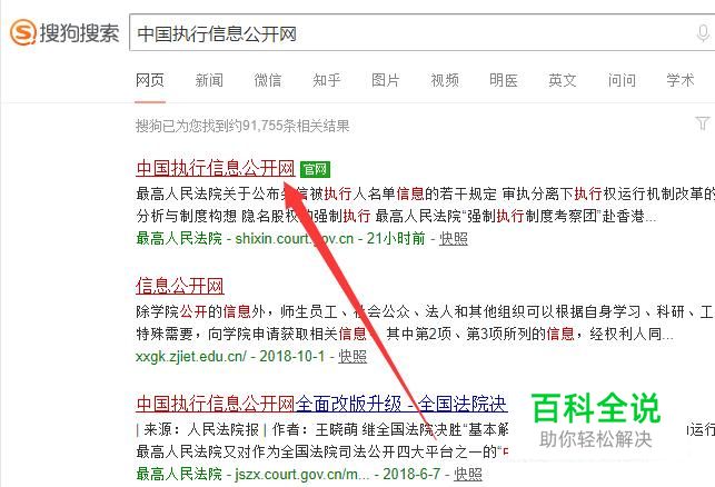 进入之后,搜索“中国执行信息公开网”,点击并进入,如图所示。