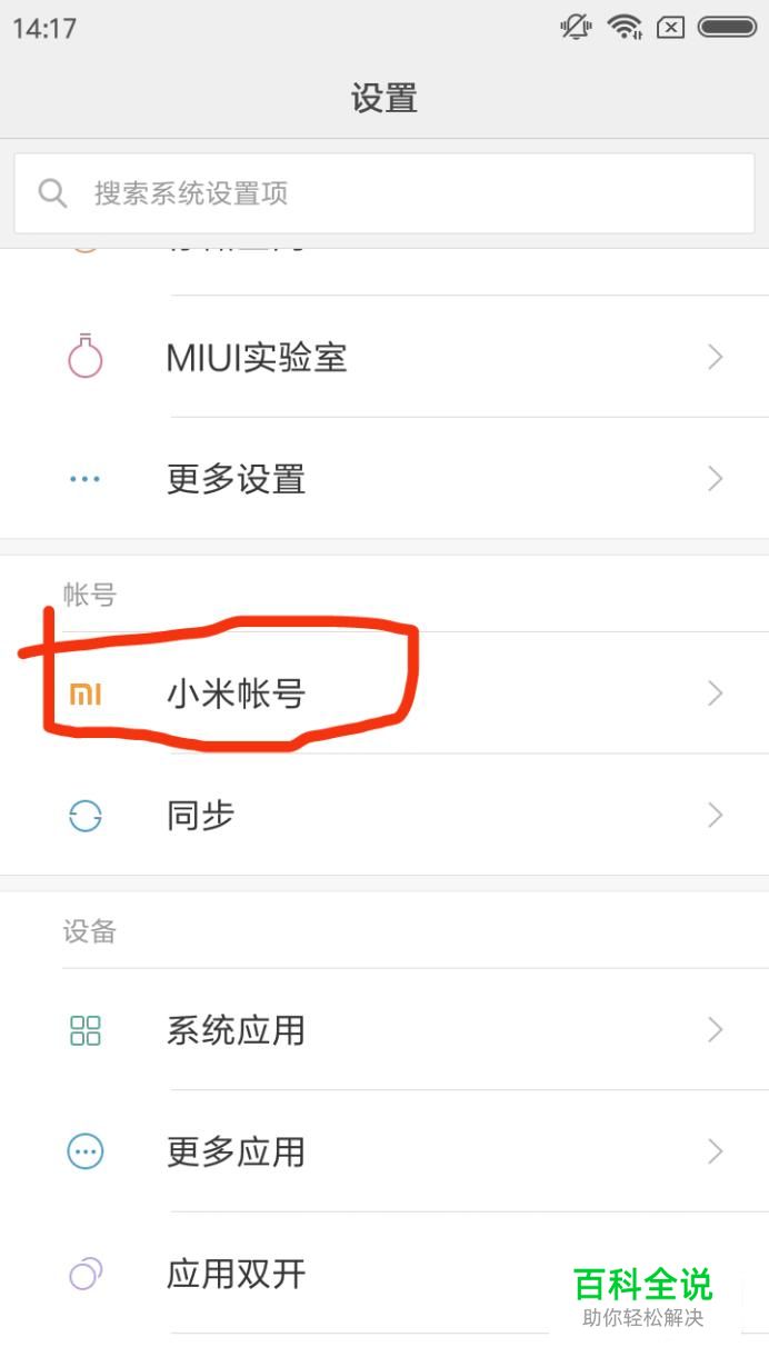 进入设置页面后往下滑找到小米账号。