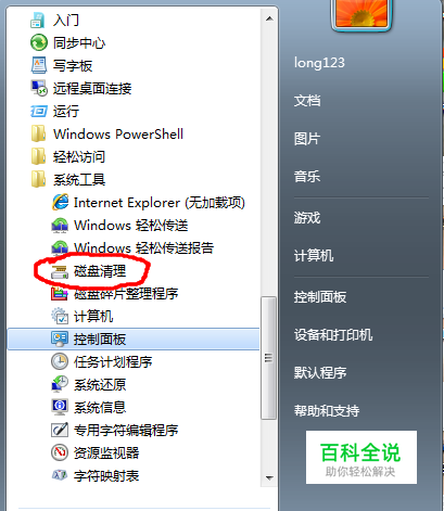 在系统工具中找到-磁盘清理,这个工具是用来清理系统每天运行所产生的垃圾,也就是小碎片,这些垃圾是影响开机速度的原因之一