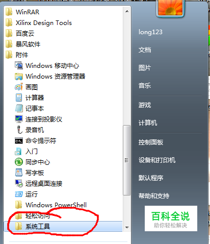 当你打开你电脑后,首先单击电脑的开始菜单-所有程序-附件-系统工具 如下图所示找到系统工具,里面有很多选项和设置