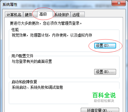在弹出的窗孔中,点击”高级“,在性能那一栏里点”设置“ 如图