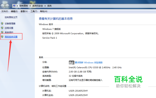 点击左上角”高级系统设置“ 如图