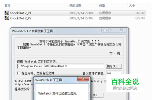 汉化 打开电脑上之前解压的Knockout2.0压缩文件,,可以看到文件“Knockout2.0汉化”文件,打开这个文件,首先双击打开“KnockOut 2_P1”,此时会有一个默认的路径出现,最好是将此路径放在你装KnockOut 2的C盘文件下,以确保工具可以准确找到对应的文件;