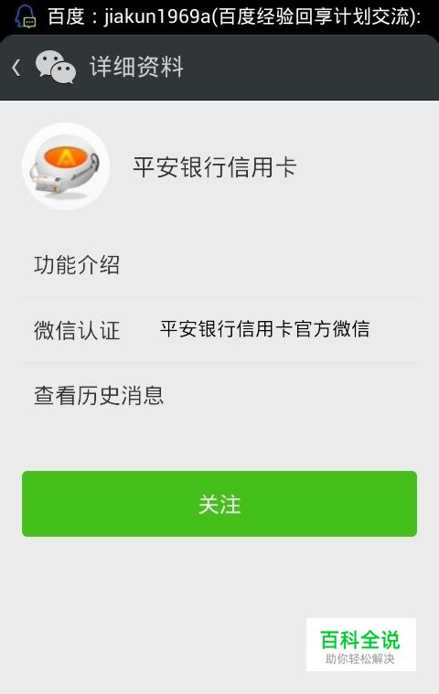 登陆微信添加好友查询 平安银行信用卡 然后点击关注