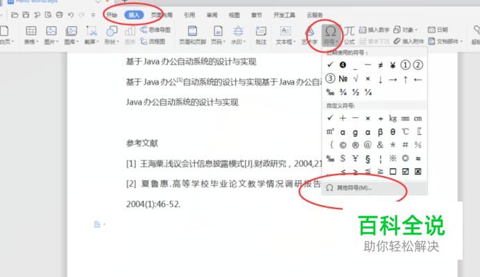其他符号 切换到【插入】选项卡,点击【符号】,选择【其他符号】,可以弹出【符号】窗口,如下图所示: