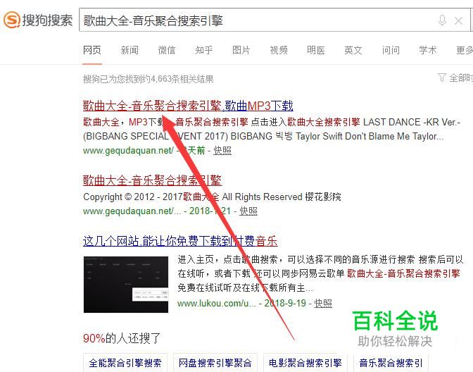 进入之后,搜索“歌曲大全-音乐聚合搜索引擎”,点击并进入,如图所示。