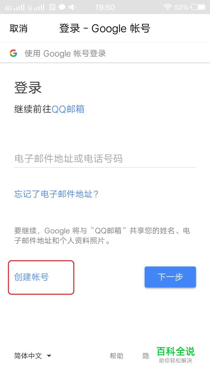进入如下页面,我们可以看到在下方有“创建账号”按钮,我们点击一下。