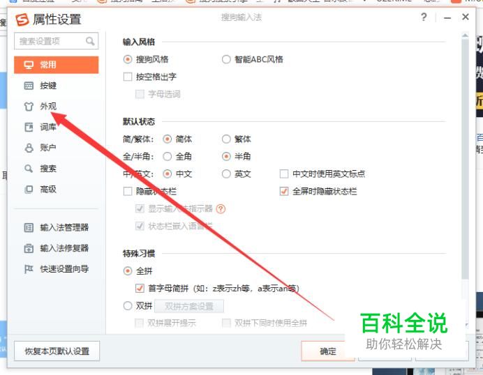 打开之后,点击“外观”,进入该页面,如图所示。