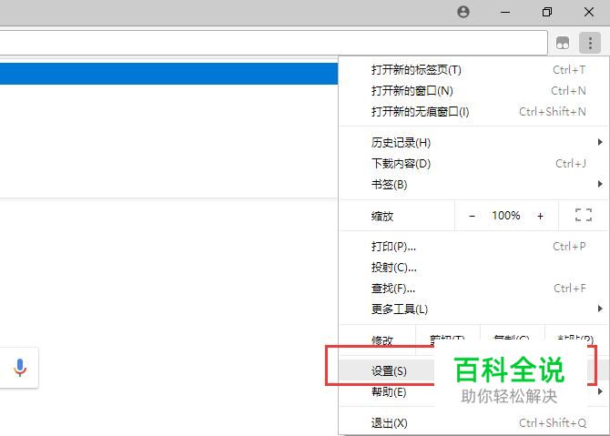 首先打开google浏览器,点击右上角的按钮,选择下拉菜单中的设置选项,如下图所示