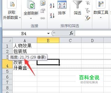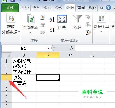 首先,打开Excel,输入需要的数据,如图,比如要调整第4行的行距,则鼠标指下第4行和第5行行号之间的分隔线处。