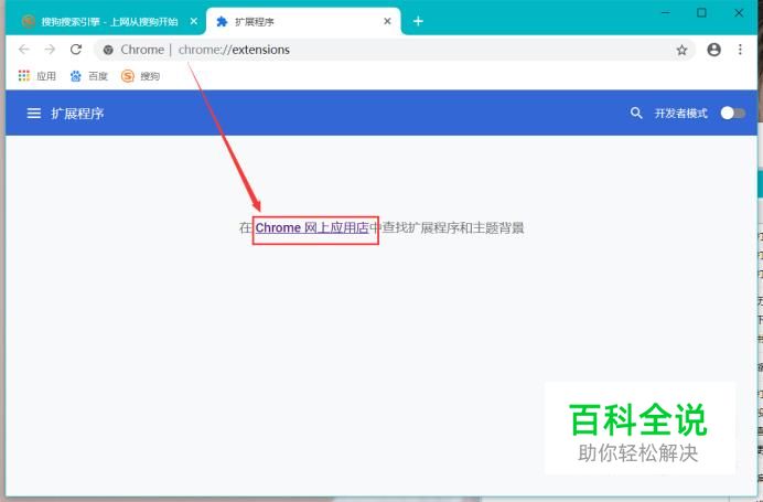 在“拓展程序”界面,根据提示点击网页中间的“Chrome网上应用店”。