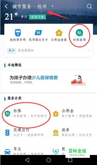 点进来之后可以看到其实我们可以查询很多东西的,选择你要查询的服务,我们选择“社保卡”,我画圈出来的地方都是可以直接点击查询的。位置可以选择你们相对应的城市。