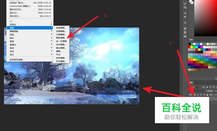 选中复制图层的选区,找到滤镜中的高斯模糊。