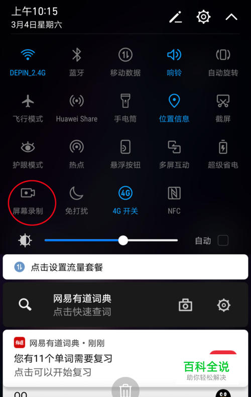 首先可以下拉橱窗,“屏幕录制”开关就在里面