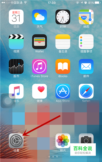 首先打开你的iphone 6s Puls手机。然后点击进入到桌面之后,在点击系统的设置选项。