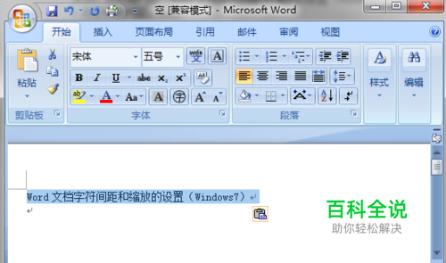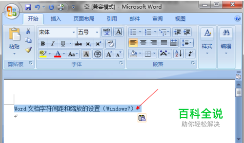 Word文档字符间距和缩放的设置(Windows7)
