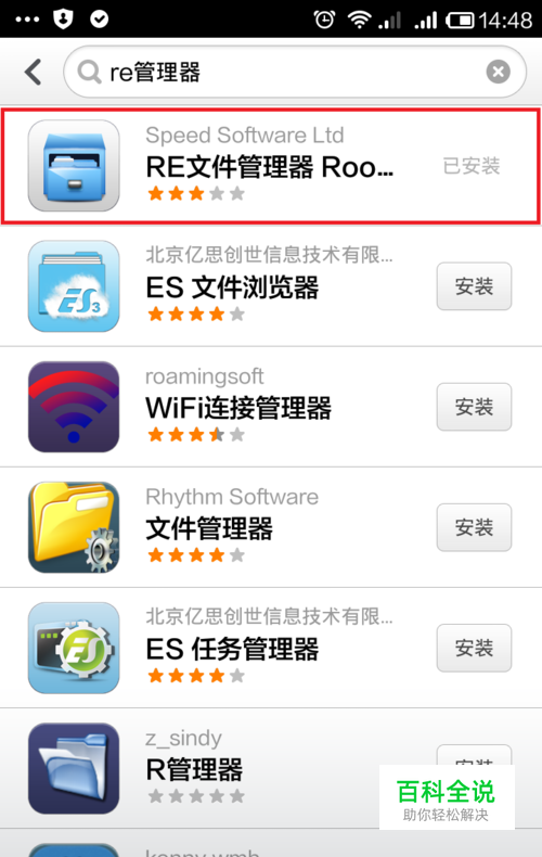 首先我们进入应用商店,搜索re管理器进行下载。