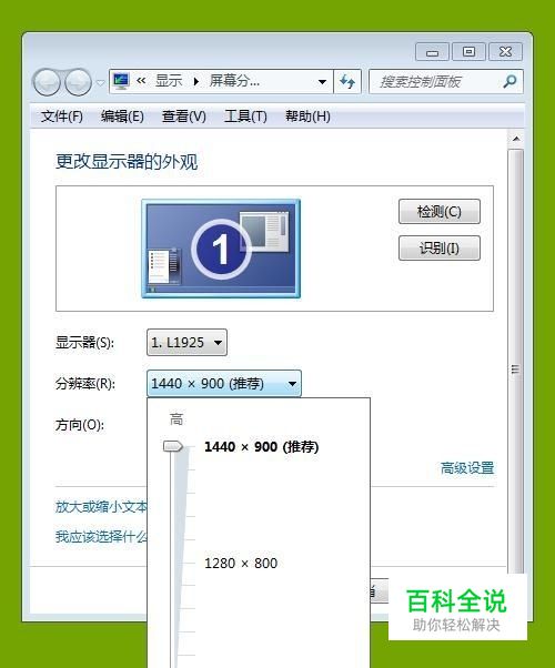 先要知道你自己的显示器的型号,搜索查看一下改型号的显示器最大分辨率是多少,我的这个最大分辨率是1440X900