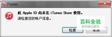 对新申请的Apple ID,使用Apple ID登录成功后就会出现“此Apple ID尚未在iTunes Store使用”的提示,此时,单击”检查“按钮。