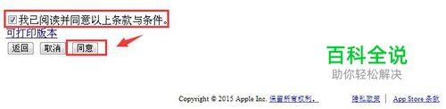 之后弹出apple id在iTunes Store中使用的”条款与条件及Apple客户隐私政策“,如果想使用Apple ID必须点击”同意“,这里请点击同意。