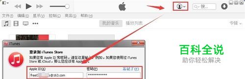 首先,打开itunes软件,打开之后,点击用户并且使用Apple ID用户名密码登录,如图中所示。