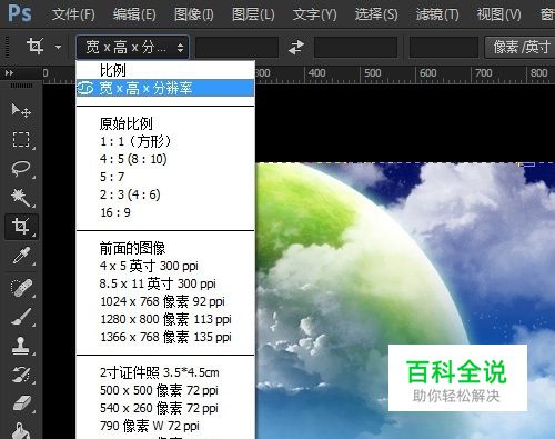 第二步:在选项栏选择“宽X高X分辨率“