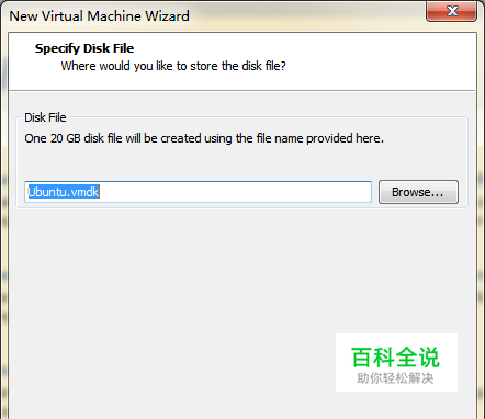 在“Virtual machine name”中您可以输入“Ubuntu” 在 “Location” 中请点击“Browse”浏览您想让这个系统放置的地方,尽可能要有 20GB 的剩余空间。最后点击“Next ” 。