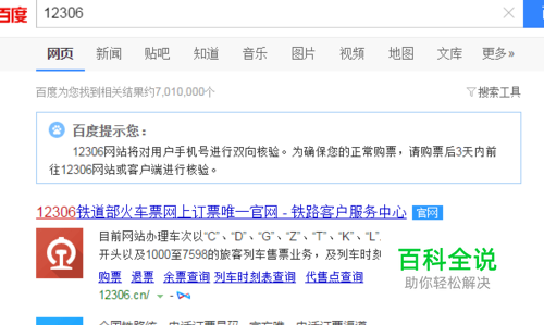 要进行拨打客服电话,就需要进行获取到12306的客服电话,在搜索框中输入12306就可搜索的结果,可以看到有客服电话为:12306,订票的电话为:95105105