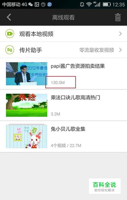 我这里以华为手机为例,安装的是安卓系统,打开爱奇艺中的离线观看视频的页面,例如,我现在想找这里的第一个视频,记住它的大小是130.0M