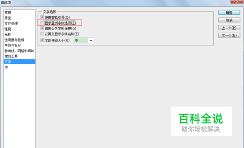 需要首先排除是否是程序设置的原因,打开PS,选择【编辑】-【首选项】-【文字】-【显示亚洲字体选项(s)】,确定该选项没有被勾选。