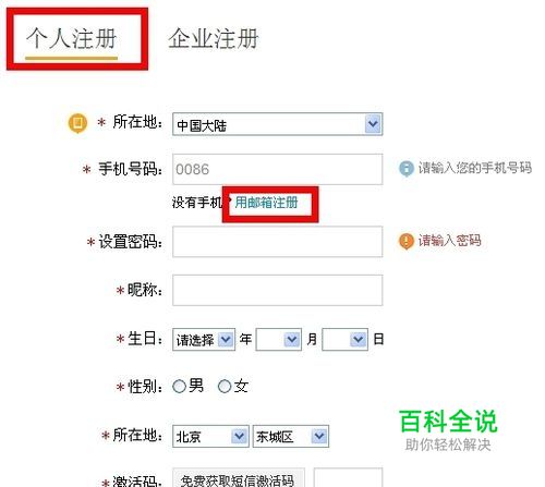 上面会有两种方式,根据自己的需要选择,如,我选择个人注册,再点击下面的用邮箱注册。