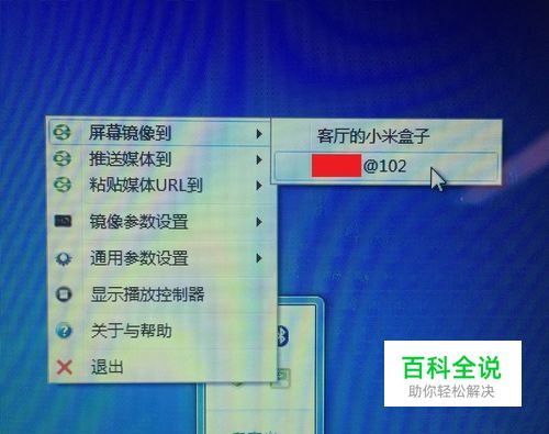 在PC屏幕右下角的隐藏通知栏里找到已经打开的AirPin,点击AirPin选择“屏幕镜像到”—“***@102” 大功告成,现在电视屏幕上是不是已经显示电脑的桌面啦