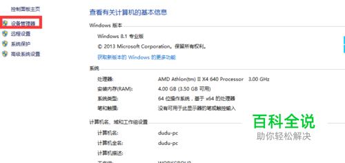 进入电脑“设备管理器” 打开我的电脑,右击鼠标,选择最下面的属性点击,进入控制面板,控制面板左侧第一个导航就是“设备管理器”