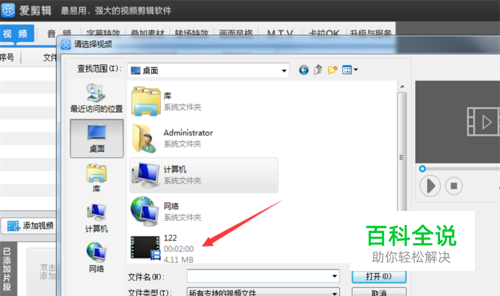 点击添加音频,然后在弹出的子菜单中选择添加背景音乐。在电脑里找到文件位置,然后点击打开。
