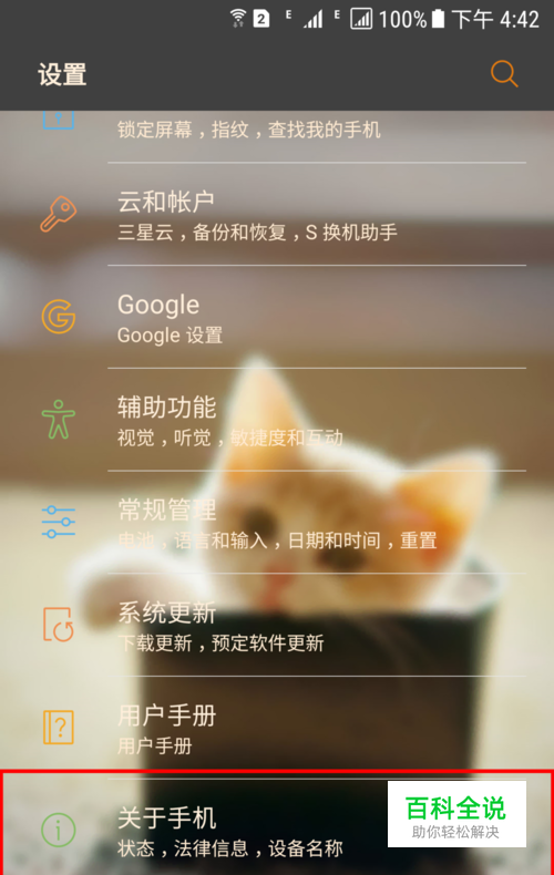 首先我们找到自己手机的“设置”,然后进入设置界面选择“关于手机”;详情参考下图。