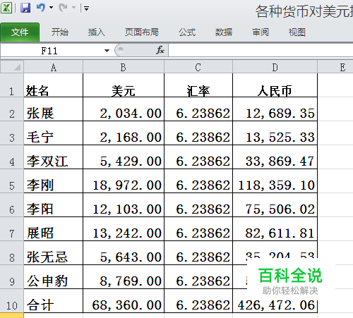 然后我们发现表中人民币金额合计栏数字发生了变化,为426,472.07。计算结果就为所显示数值运算得到的结果。