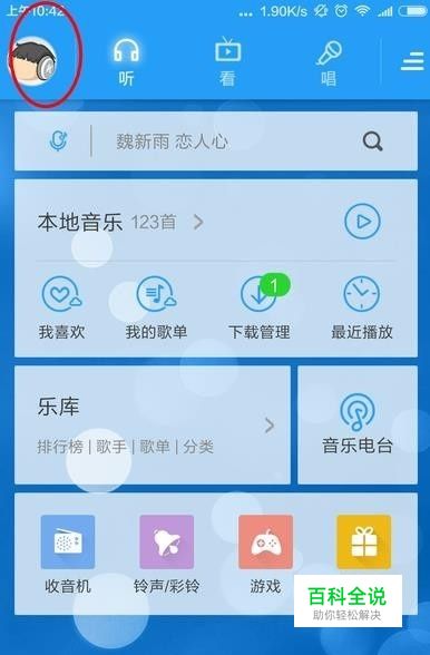 在音乐播放的默认页面,我们可以看到左上角有个头像的模块,我们这边点击头像