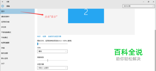 在桌面右击,点击“显示设置”或者点击开始按钮点击“设置”,进入win10 设置页面,然后点击下面的高级显示设置