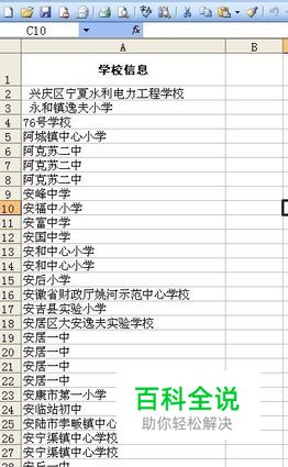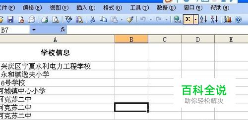 打开microsoft office excel 2003版本。这里需要处理的是一份关于学校信息的文档。观察发现有一些学校信息存在重复,并且学校信息在排序上也暂无规律。