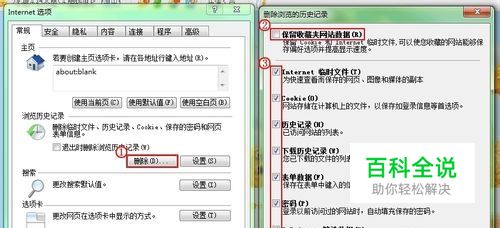 点击“删除”,在打开的新窗口中取消勾选“保留收藏夹网站数据”,勾选其他复选框,点击“删除”即可。 IE7