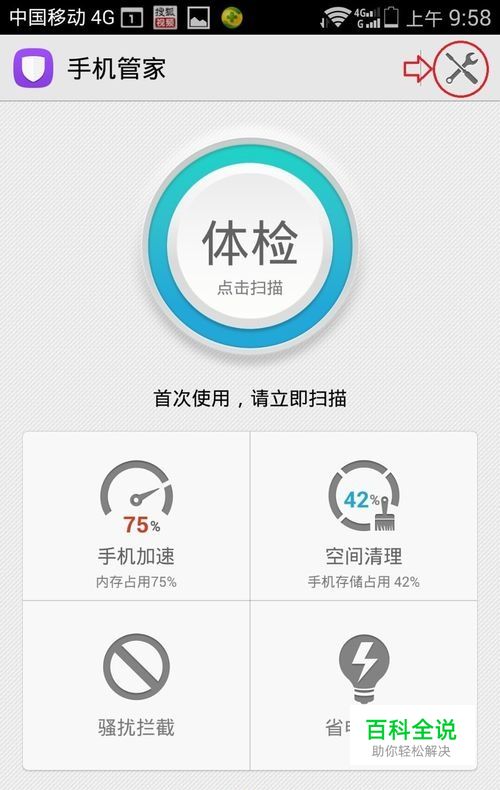 在手机桌面找到“手机管家”应用 (一般如果没移动过在首页就能看到)